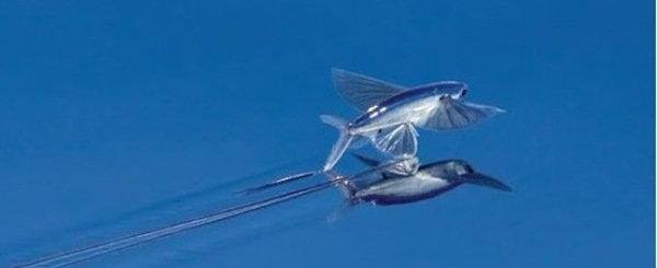 在海上航行的旅客,常常看見飛魚成群振鰭躍出海面做短暫飛行的奇景。這些外形像子彈的飛魚,背部呈鮮藍色,腹部呈銀白色,跟大海里的一般魚類沒有多大分別。它們的體型多半很小,其中一些卻長一英尺或以上。飛魚的尾鰭下半部特別發達,是動力的來源。飛魚一躍出水面,身上折起的變鰭便豎挺地張開。所有飛魚的胸鰭都特別闊大,張開猶如飛機的機翼,有些飛魚連腹鰭也特別發達;兩者的差別就像單翼機和變翼機。