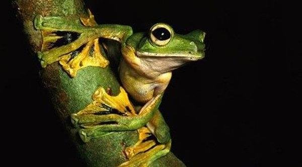 華萊士飛蛙(黑掌樹蛙)是在馬來西亞和印尼發現的,它們習慣生活在高高的樹梢上。這種青蛙擁有帶蹼的長腳趾,而且四肢之間有扁平的皮膚,它們利用這些東西,可以從樹梢上降落下來。從某方面來說,術語「降落傘」就涉及到動物以很小的傾斜度從高處快速下降。